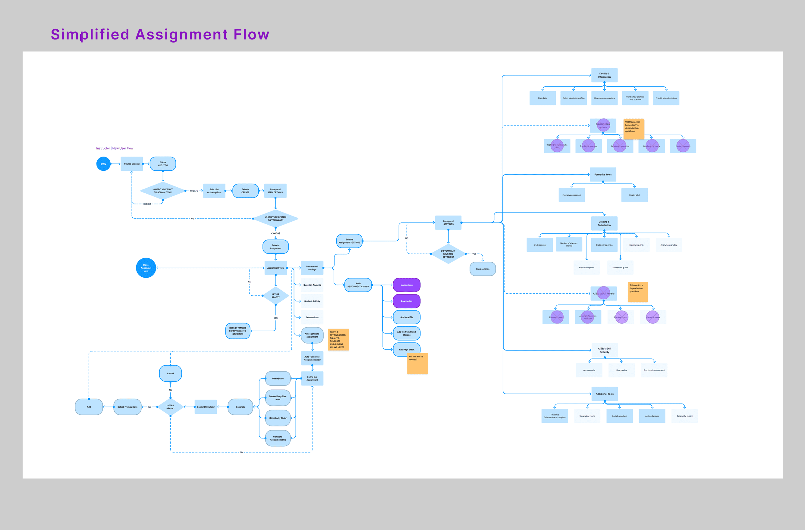 To solve a high-impact system issue within a tight execution window, the following steps were taken: Stakeholder Research: Interviews and data analysis via Aha! and user surveys to quantify user pain points. Flow Mapping: In-depth analysis of both instructor and student perspectives to identify breaking points in the current architecture. Competitive Benchmarking: Evaluated how other EdTech platforms manage pre-access instruction visibility. Solution Pruning: Assessed options like "Peek Panels" (discarded due to space and architectural constraints) before deciding on total flow separation.