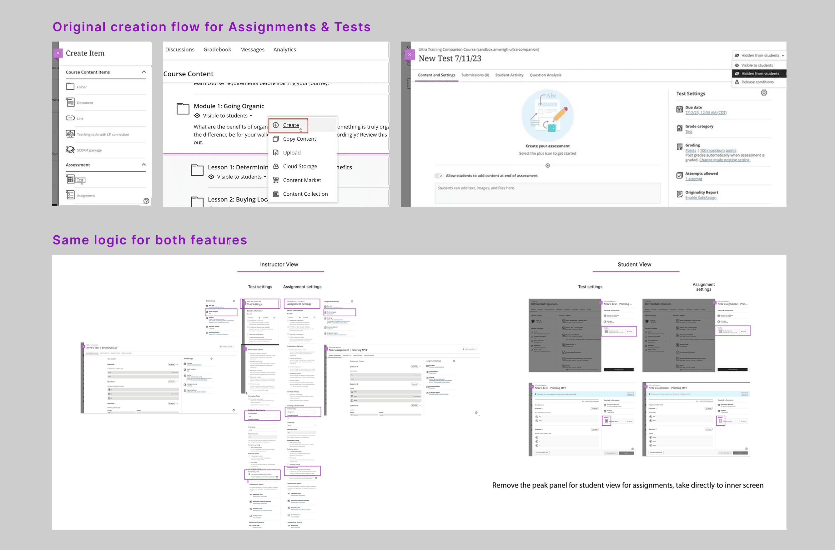 A dual-creation architecture was implemented in Learn Ultra: Flexible Assignments: A workflow where collaboration and corrections are possible without technical friction. Secure Tests: A protected environment for formal evaluations. Intuitive Navigation: Reduced unnecessary steps and eliminated the "delete and start over" workaround.