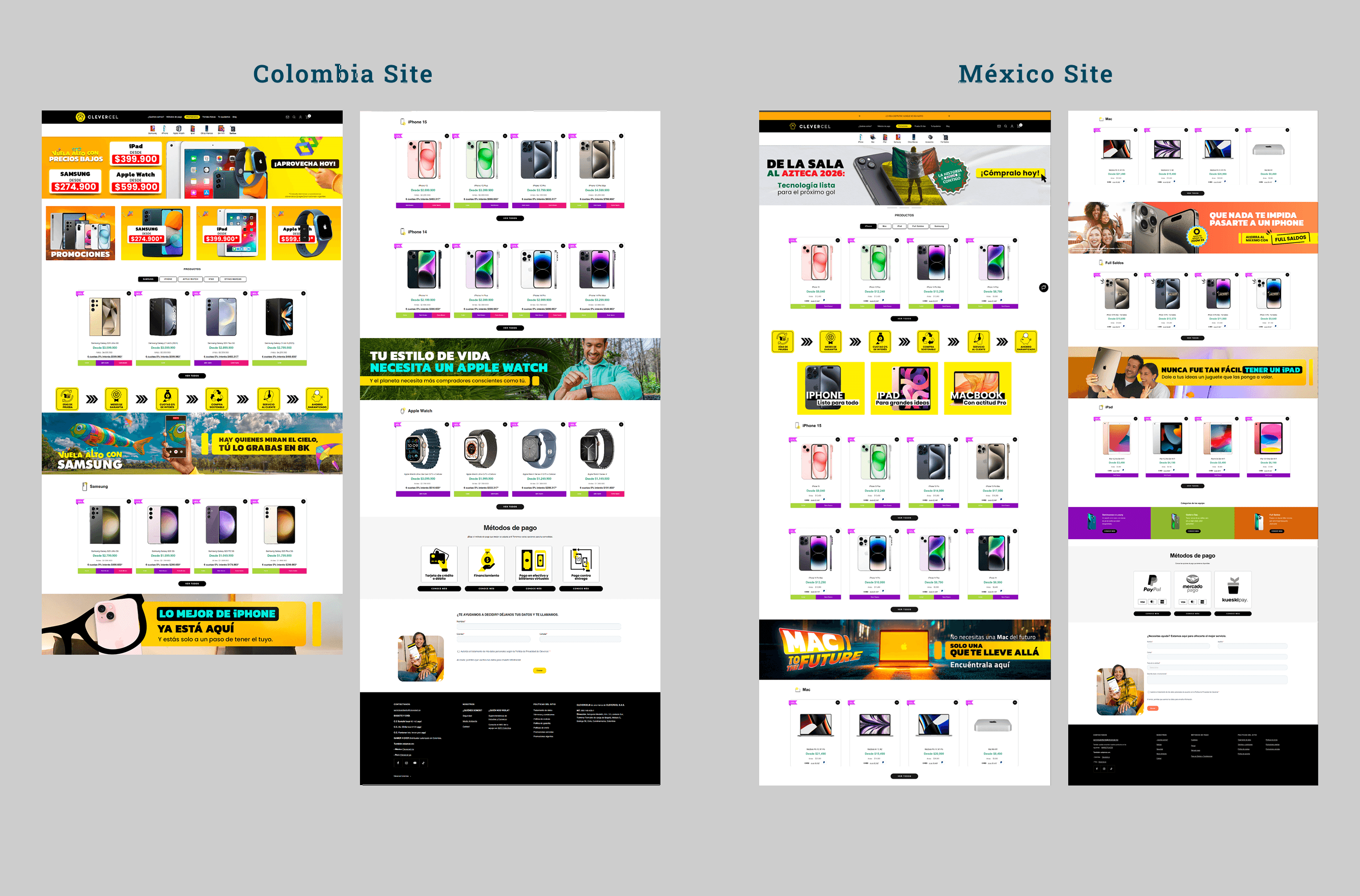 Strategic and operational leadership for Clevercel, the leading refurbished tech platform in Latin America. As E-commerce Director, I led the platform's transformation on Shopify Plus for the Mexican and Colombian markets. My primary focus was to increase buyer trust through the web portal by elevating standards for graphic design, usability, and information accessibility. Under my leadership, I established a previously non-existent metrics baseline to ground every decision in data, while directing a design team with the mission to turn the uncertainty of "used equipment" into a premium, transparent, and highly efficient shopping experience. The strategy focused on consolidating the Mexico store as the operational and visual model to follow, developing a modern and attractive site with optimized architecture and nomenclature that was later replicated in Colombia. Additionally, I managed content holistically within Shopify Plus, boosting execution and layout through the strategic use of its AI tools.