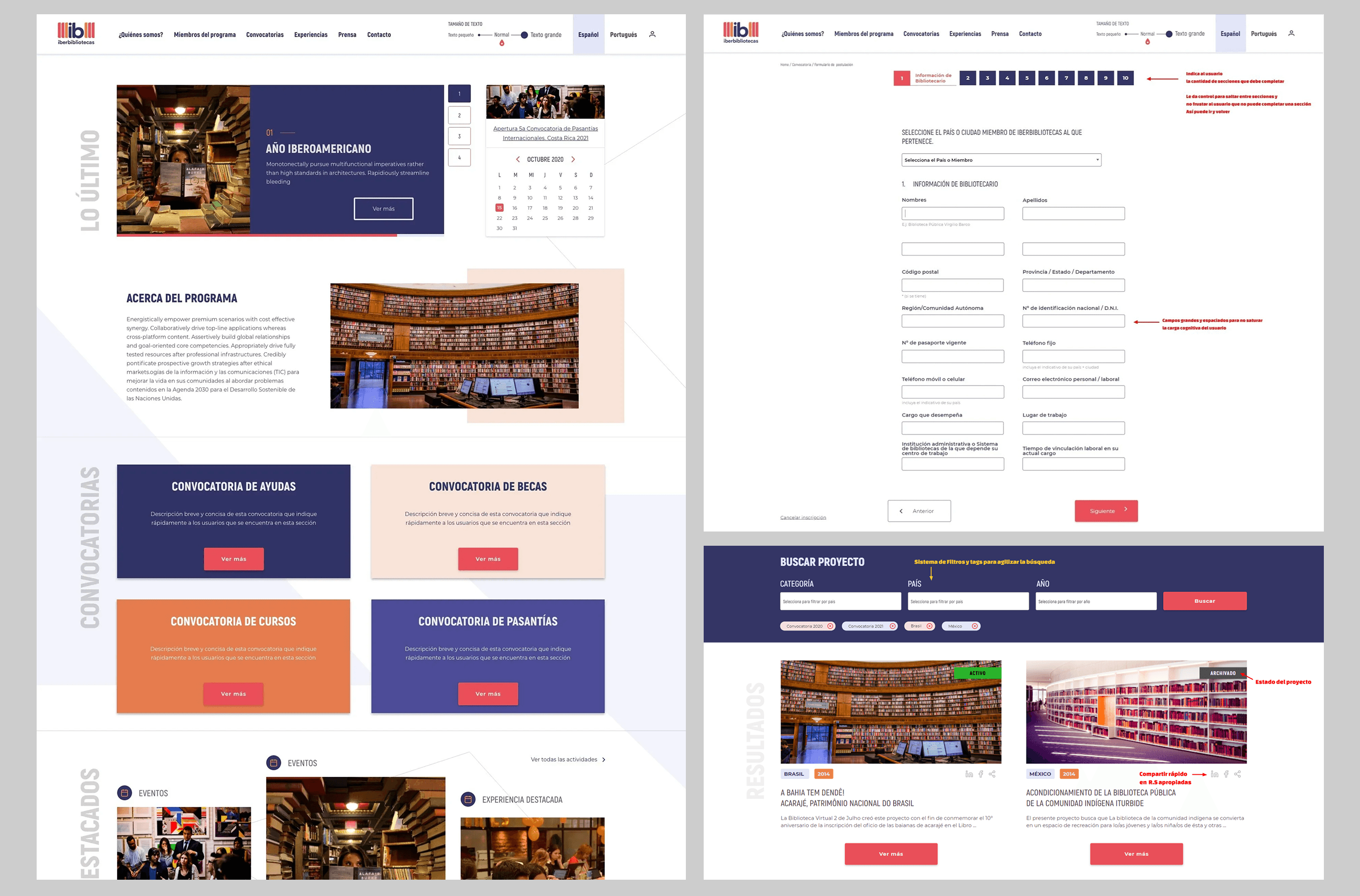 Redesign of the Iberbibliotecas portal. The project transformed a dense institutional platform into an inclusive and functional tool, optimizing scholarship application flows and project browsing through universal accessibility and senior-centered design.