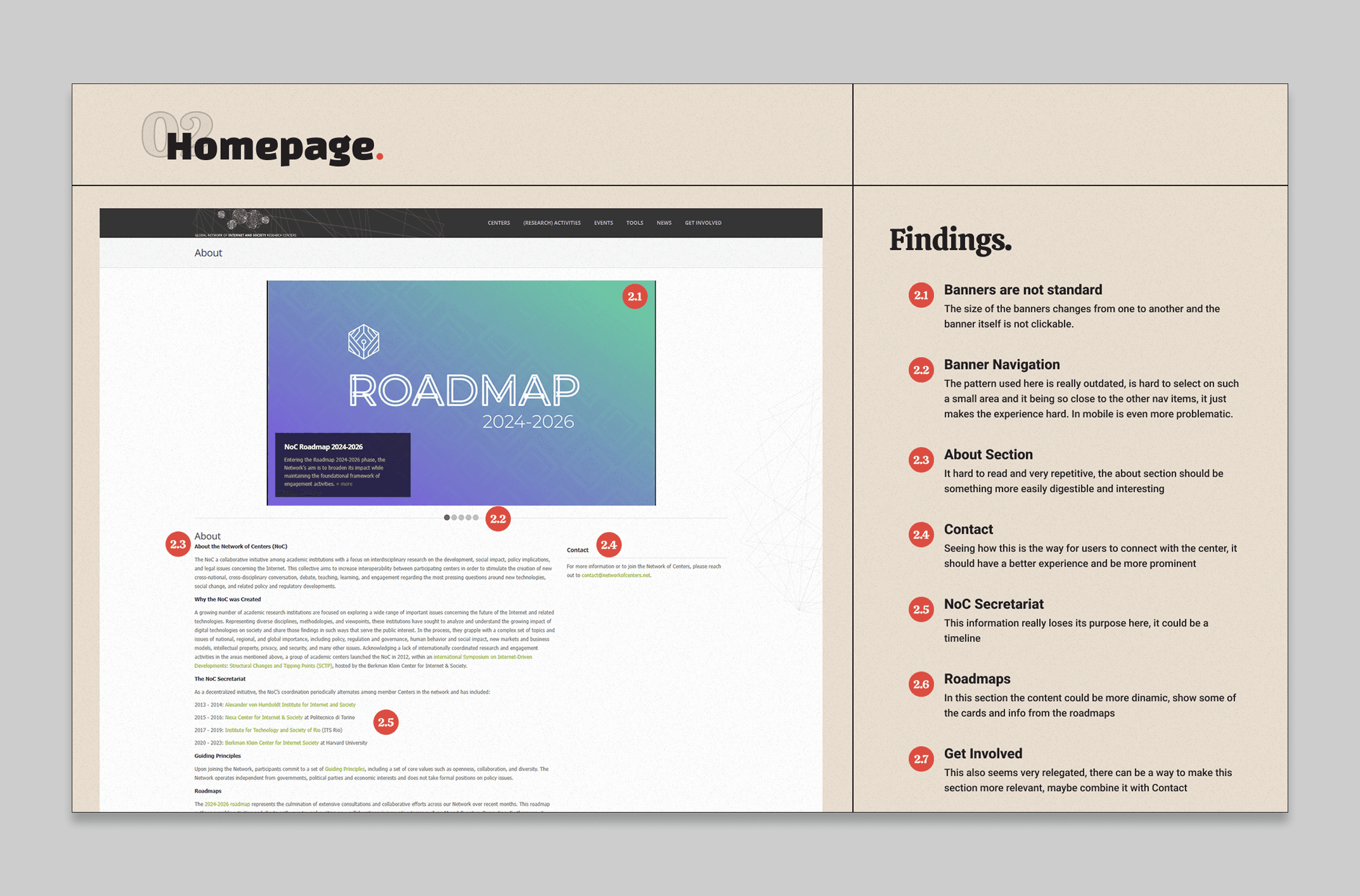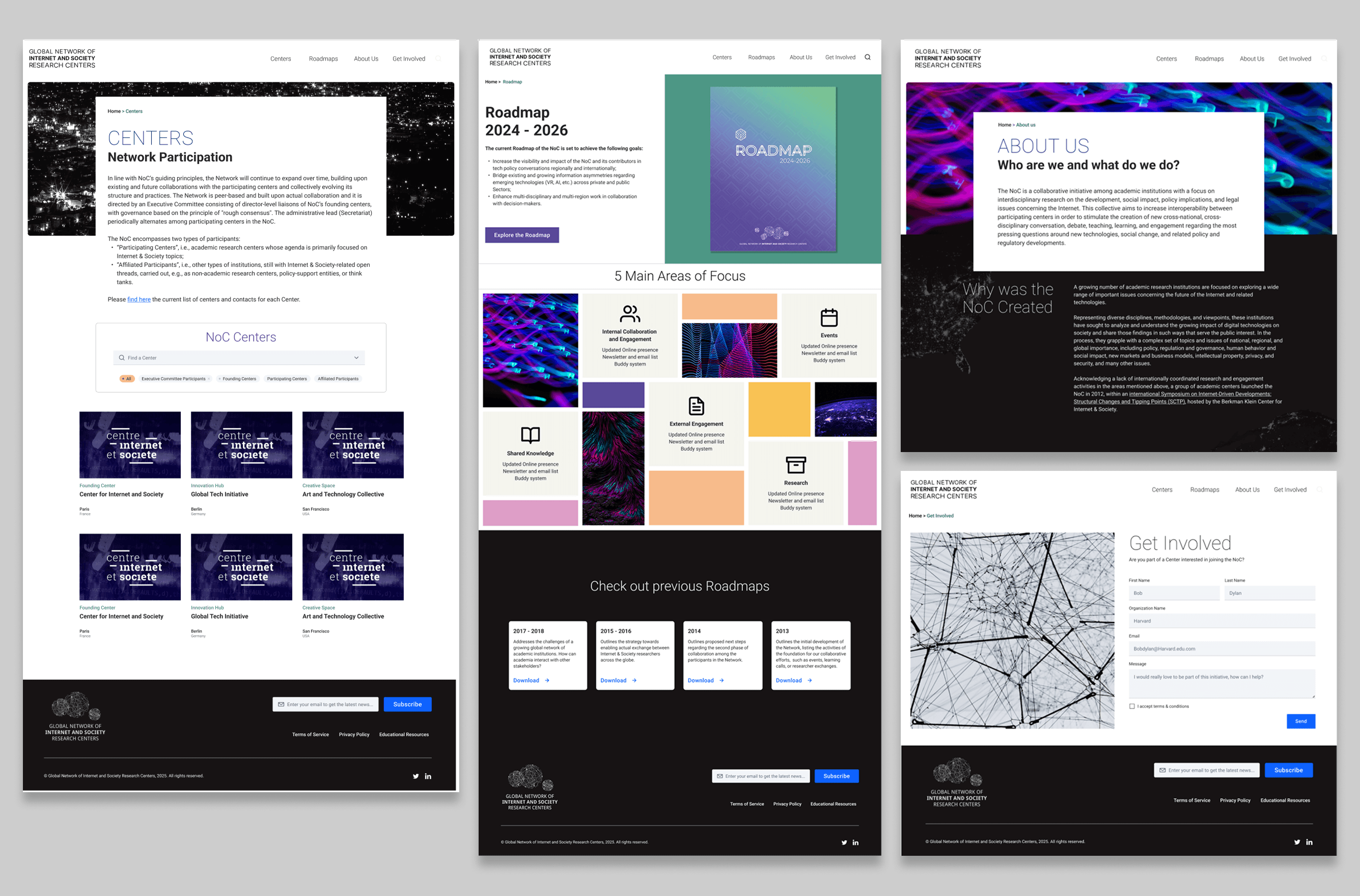 The original site suffered from a crisis of both identity and functionality: Outdated Aesthetic: A design that felt like a legacy blog, misaligned with the prestige of a network affiliated with Harvard’s Berkman Klein Center. Walls of Text: Endless blocks of content and a lack of visual hierarchy made information nearly impossible to digest. "Dead" Elements: Broken map plugins and non-functional features that eroded professional credibility. Fragmented Navigation: The inability to move fluidly between different centers blocked the network’s core mission: collaboration.